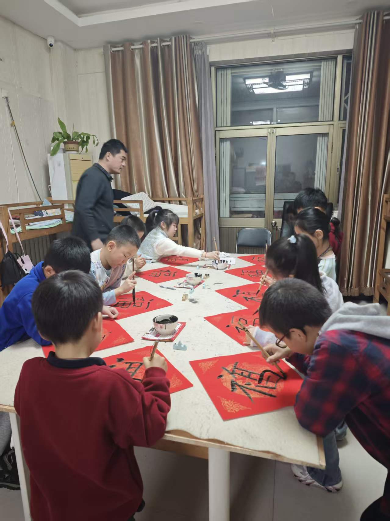 活动现场,贾宝惠艺术名家工作室的近百名小学员齐聚一堂,以笔墨为媒介,书写对新春的美好祝愿。孩子们神情专注,一笔一画间流露出对书法艺术的热爱与执着。他们的作品内容丰富多样,既有对党、对祖国的深情告白,也有对亲人、老师的温馨祝福,充分展现了扎实的书法功底和良好的艺术素养。