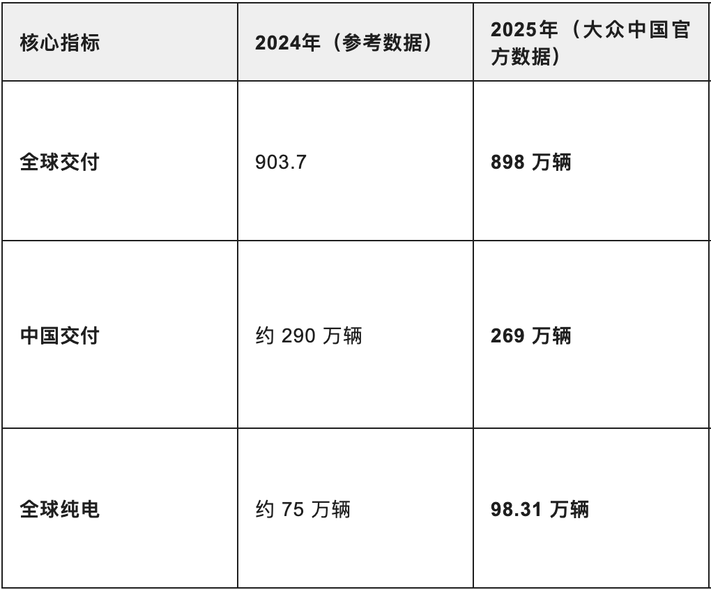 尽管全球排名暂居次席,大众在新能源汽车领域展现出强劲增长势头。2025年,其纯电动汽车交付量达98.31万辆,同比增长32%,在集团总销量中的占比提升至10.9%,较上年增加2.7个百分点。这一数据表明,大众在电动化转型中已取得阶段性成果,为未来竞争奠定了技术基础。