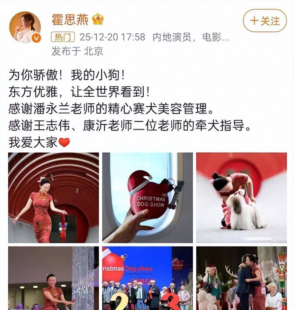 在娱乐圈的聚光灯之外,霍思燕以另一种姿态成为公众焦点。这位曾因《天仙配》中紫儿一角深入人心的女演员,如今以牵犬师身份亮相国际舞台,在比利时布鲁塞尔国际犬展上书写了属于中国团队的传奇。