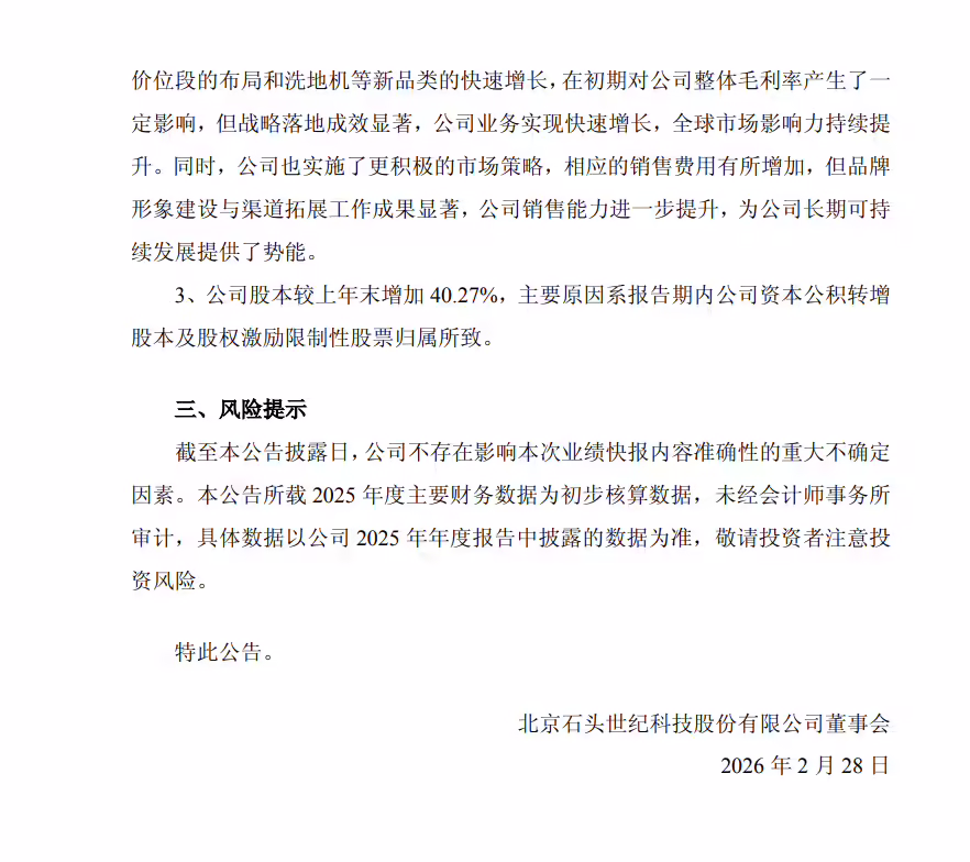 市场分析人士指出,石头科技通过"技术驱动+品类扩张"的双轮战略,成功在竞争激烈的智能硬件市场开辟新增长极。扫地机器人与洗地机的协同发展模式,既满足了消费者多元化需求,又构建起完整的产品生态体系。随着全球智能家居市场的持续扩容,公司在清洁电器领域的先发优势和技术积累,将成为其穿越行业周期的重要保障。