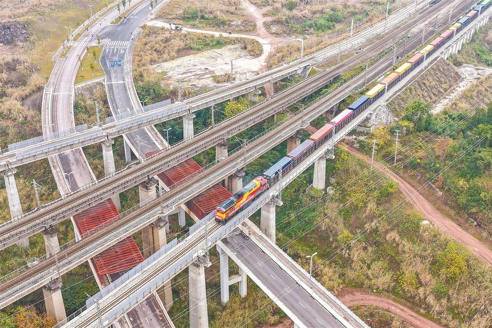 1月7日,重庆果园港鱼嘴站迎来一列满载“重庆造”新能源汽车的铁海联运专列。这趟专列共装载108台新能源汽车,将开启一段跨越山海的旅程。按照计划,专列将在48小时后顺利抵达广州南沙港,随后这些新能源汽车将换装海轮,远赴中东市场。