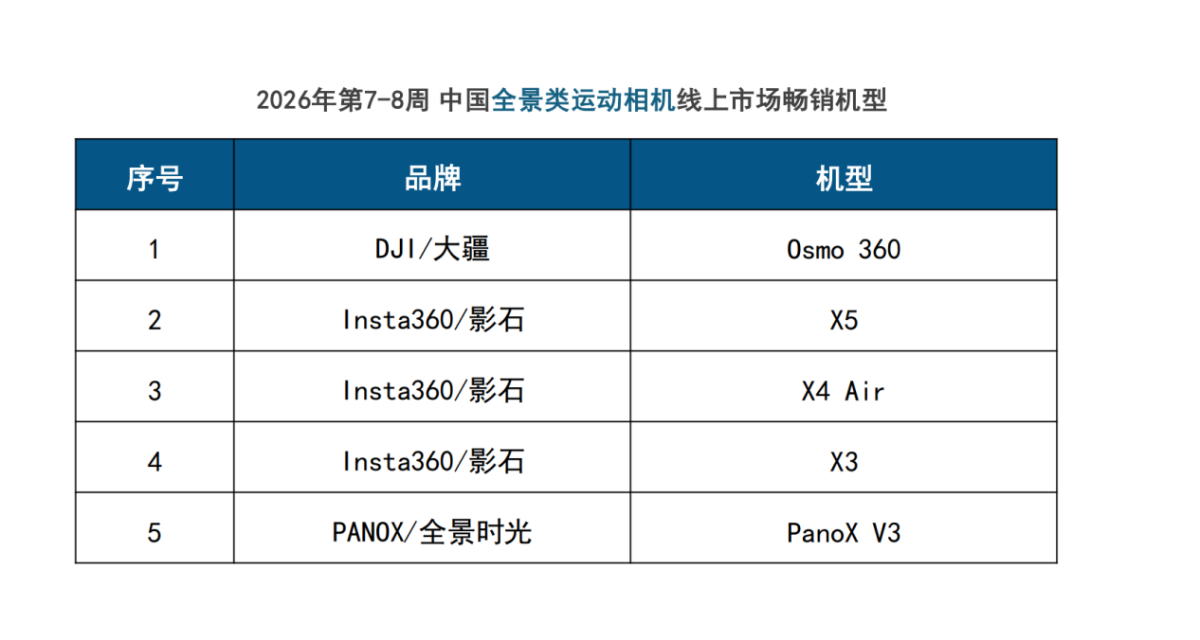 行业竞争还会继续。Insta360依然强劲,其他品牌也在尝试突围。可从2026年开年的这份双周报告看,大疆已经在泛运动相机市场形成稳定结构性优势。