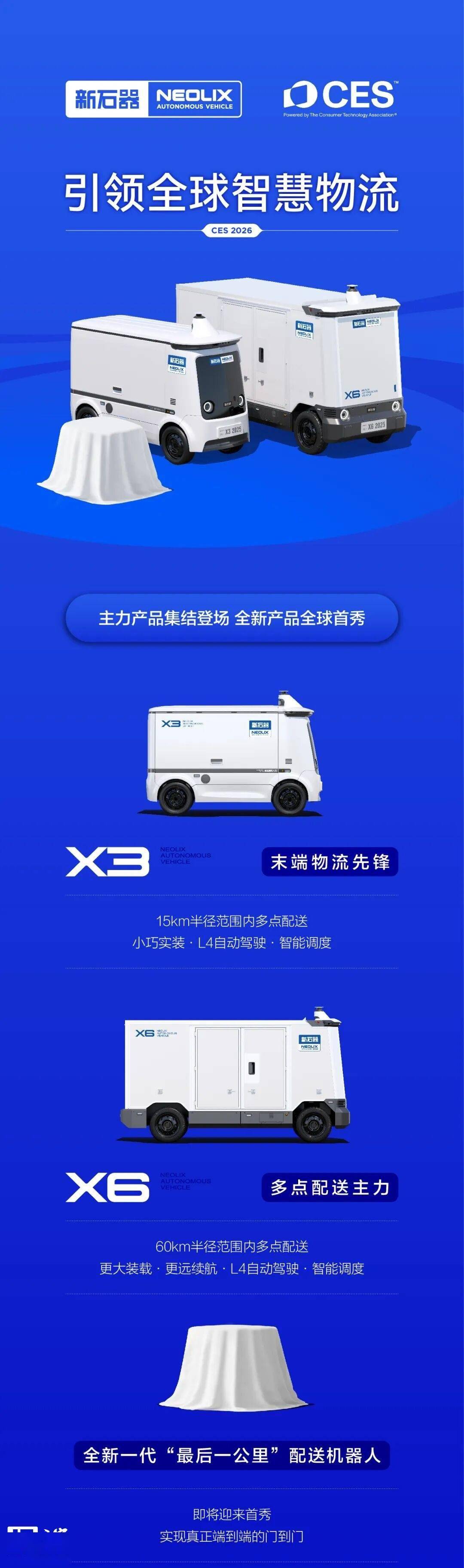 新石器无人车即将在国际消费电子展(CES 2026)上迎来全球首秀。这场备受瞩目的科技盛会将于2026年1月6日至9日在美国拉斯维加斯举行,届时新石器将携主力无人车矩阵及全新产品亮相,并向全球行业决策者与生态合作伙伴发布基于人工智能的新一代城市配送解决方案。