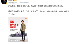 尽管直播时间调整,但雷军仍提前向公众送上新年祝福,并表示期待与大家在新的直播时间相聚。此次活动不仅展现了小米在智能硬件领域的创新实力,也体现了企业与用户互动的诚意。